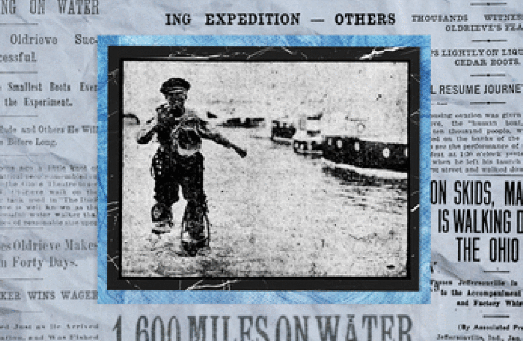 ചരിത്രത്തിൽ ചില സാഹസിക പ്രകടനങ്ങൾ ആളുകളുടെ ഭാവനയെ അത്രയധികം ആകർഷിച്ചിട്ടുണ്ട്. 1907-ൽ ചാൾസ് ഓൾഡ്രീവ് എന്ന ധീരൻ നടത്തിയ ‘ജലത്തിലൂടെയുള്ള നടത്തം’ അത്തരത്തിൽ ഒന്നാണ്. ഒഹായോയിലെ സിൻസിനാറ്റിയിൽ നിന്ന് തുടങ്ങി, മിസ്സിസ്സിപ്പി നദിയിലൂടെ തെക്കോട്ട് സഞ്ചരിച്ച് ലൂസിയാനയിലെ ന്യൂ ഓർലിയൻസിൽ അവസാനിച്ച ഈ 1600 മൈൽ (ഏകദേശം 2575 കിലോമീറ്റർ) ദൂരമുള്ള യാത്ര, മനുഷ്യന്റെ കായികക്ഷമതയുടെയും കണ്ടുപിടിത്തത്തിന്റെയും മകുടോദാഹരണമായി കണക്കാക്കപ്പെടുന്നു.
