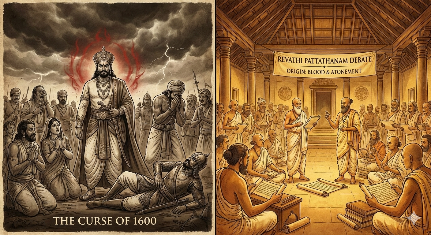 പുരാതന കോഴിക്കോടിന്റെ ചരിത്രത്തിൽ രക്തം പുരണ്ട ഒരു പ്രതികാര കഥ എങ്ങനെ ഒരു മഹത്തായ വിദ്വത്സദസ്സിന് വഴിയൊരുക്കി? സാമൂതിരിയുടെ ശാപവും രേവതി പട്ടത്താനത്തിന്റെ ഉത്ഭവവും തമ്മിലുള്ള ബന്ധം ഇന്നും ചരിത്രകാരന്മാർക്കിടയിൽ ഒരു ചൂടേറിയ സംവാദ വിഷയമാണ്.
