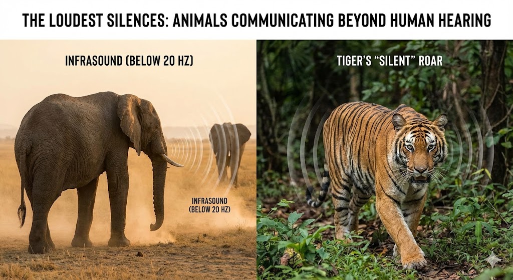 ശബ്ദത്തിന്റെ ലോകത്ത്, നമുക്ക് അദൃശ്യമായ ഒരു തരംഗദൈർഘ്യത്തിൽ മൃഗങ്ങൾ എങ്ങനെ പരസ്പരം സംസാരിക്കുന്നു എന്ന് നോക്കാം. ഈ ‘ഉച്ചത്തിലുള്ള നിശ്ശബ്ദതകൾ’ അവരുടെ അതിജീവനത്തിന് നിർണായകമാണ്.