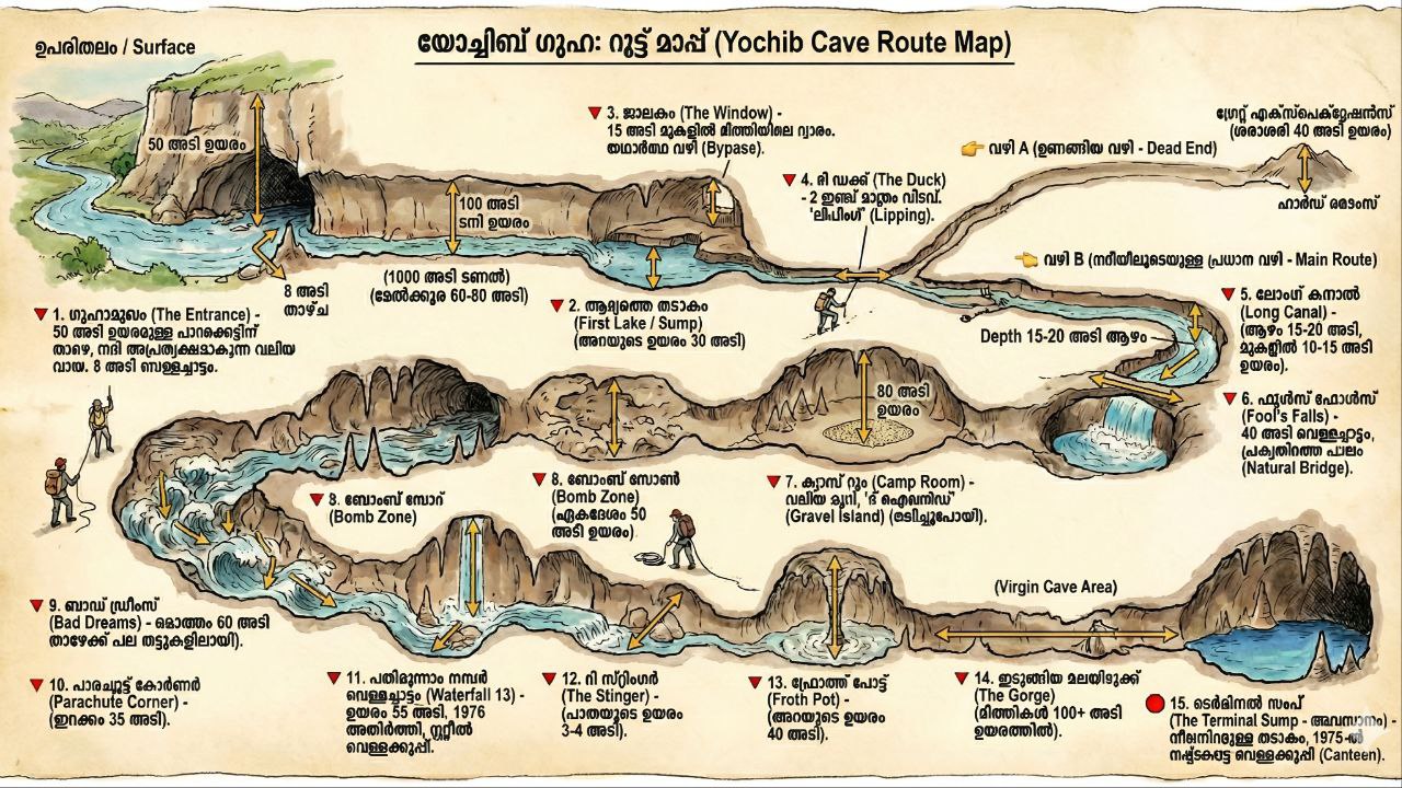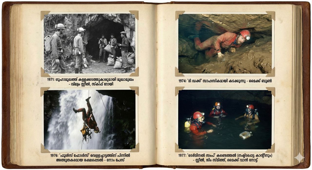 - അന്ത്യം: ഗുഹയുടെ അവസാനമായ ‘ടെർമിനൽ സംപ്’ (Terminal Sump) കണ്ടെത്തുന്നു. 1976-ൽ നഷ്ടപ്പെട്ട സ്റ്റീലിന്റെ കാന്റീൻ അവിടെ കണ്ടെത്തുന്നു.