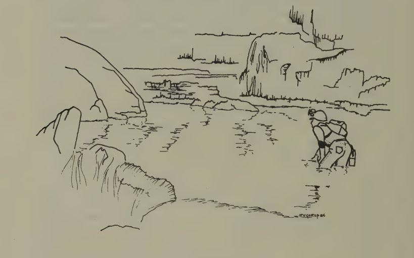 - ഇരുവശവും ഉയർന്നുനിൽക്കുന്ന ഭിത്തികൾ. താഴെ ശക്തമായ നദി.