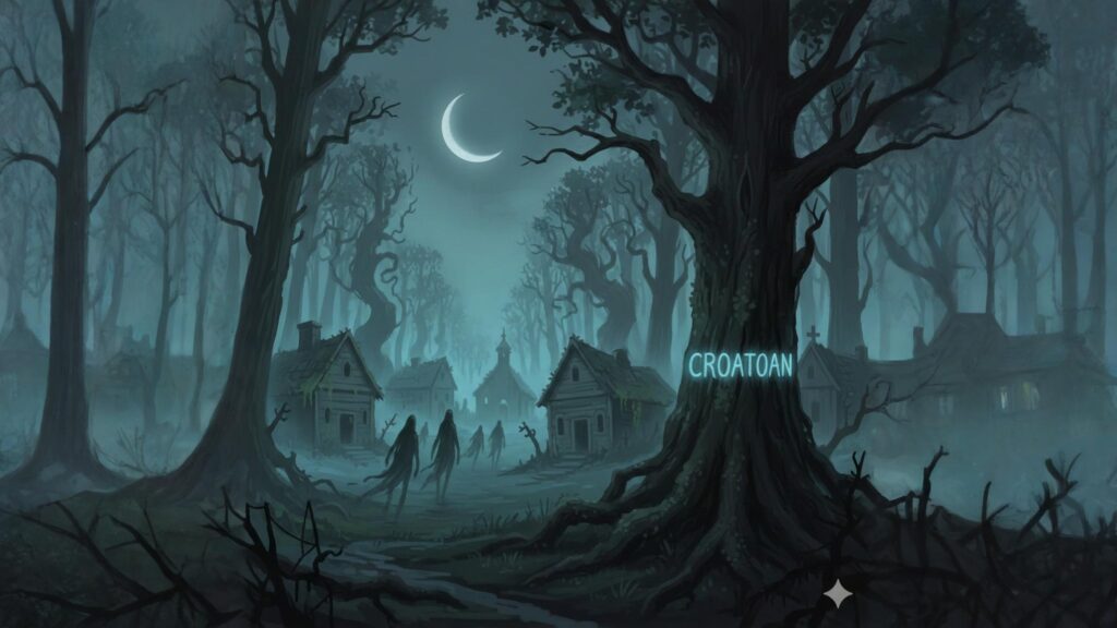 3. മരത്തിൽ കൊത്തിയ “CROATOAN” എന്ന വാക്ക്.